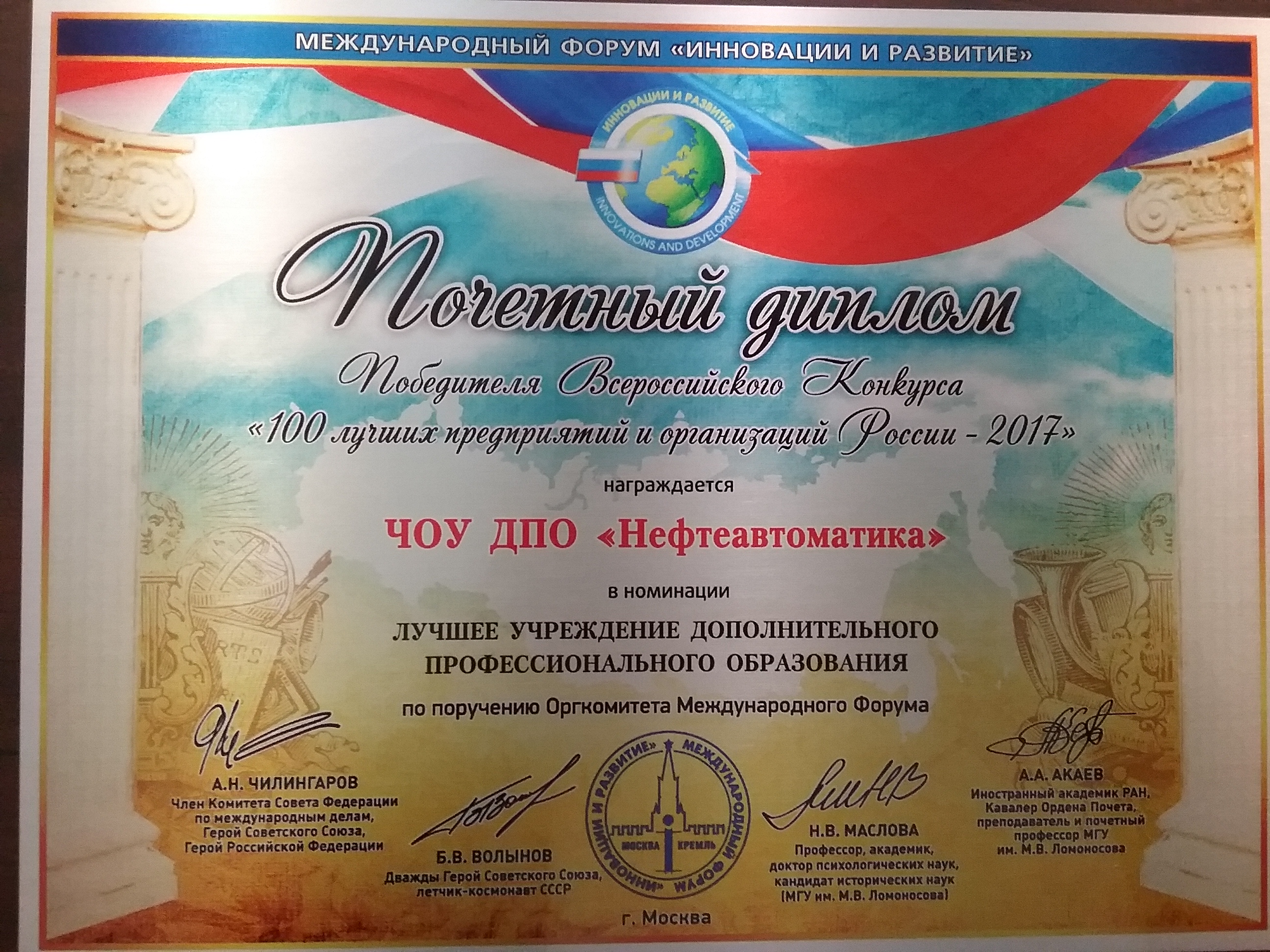 - Диплом лучшее учреждение ДПО